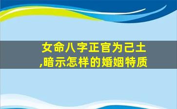 在八字命理中,正官代表女命的丈夫、正缘及婚姻状态,而己土作为正官时的特质,需结合五行生克、十神关系及八字整体格局来分析。以下是己土正官可能暗示的婚姻特质: