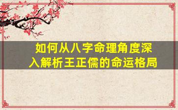 从八字命理角度解析人物命运格局,需结合其生辰八字、五行生克、十神配置及大运流年综合分析。由于王正儒的具体出生时间(年、月、日、时)未公开,以下仅以八字理论框架为例,提供一种可能的分析思路: