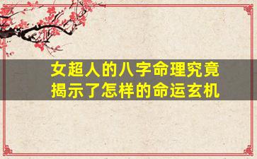 关于“女超人”的八字命理分析,虽然这是一个虚构的角色(如DC漫画中的超级英雄),但我们可以从传统文化角度,结合她的设定背景进行象征性的解读。以下内容仅供娱乐和命理文化探讨: