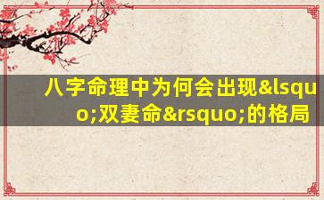 在八字命理中,“双妻命”是一种特定命局结构的俗称,指男性命盘中可能出现婚姻关系复杂、有多段婚姻或同时存在情感纠葛的倾向。其形成与命理中的五行生克、十神组合、神煞等因素密切相关。以下从专业角度分析其成因: