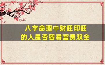 在八字命理中,财星和印星的力量强弱与搭配是否得当,确实对一个人的富贵层次有重要影响,但“财旺印旺”是否必然导致“富贵双全”,需结合具体命局综合分析。以下是关键要点: