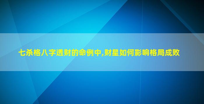在七杀格八字中,财星的出现对格局成败的影响十分关键,需结合其位置、强弱以及与其他十神的互动综合分析。以下是具体影响的解析: