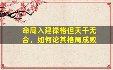 在八字命理中,建禄格是日主得禄于月令的格局(如甲日主生于寅月,乙日主生于卯月等),代表先天禀赋强旺,但格局成败需结合全局分析。若天干无合,需重点关注以下几点: