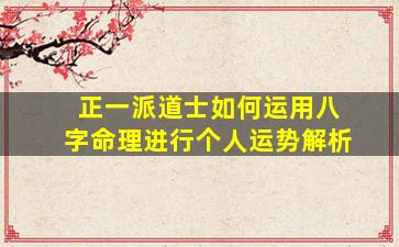 正一派道士在运用八字命理(四柱预测)进行个人运势解析时,通常遵循一套融合道教思想和传统命理学的体系,注重天人感应与阴阳五行的平衡。以下是其解析流程的核心要点: