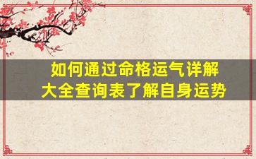 通过命格运气查询表了解自身运势是一种常见的命理分析方法,通常结合生辰八字、五行、生肖、星座等元素进行综合解读。以下是一个系统的步骤指南,帮助你合理利用此类工具: