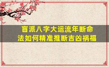 盲派八字大运流年断命法是中国传统命理学中的一种实战派技法,以简洁、直接、重象法为特点,强调“用神”与“干支组合”的灵活运用。其精准推断吉凶祸福的核心逻辑可概括为以下步骤: