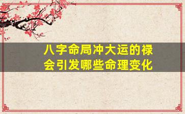 在八字命理中,大运与命局之间的相互作用会引发不同的吉凶变化,尤其是当大运冲命局中的"禄"时(禄代表福禄、俸禄、根基),往往会影响命主的财运、事业、健康等方面。以下是可能引发的命理变化及具体分析思路:
