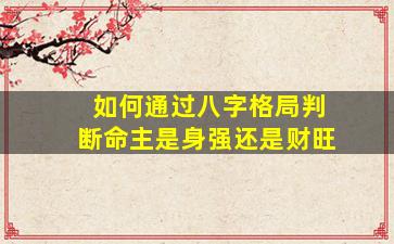 通过八字格局判断命主是身强还是财旺,需综合分析日主与十神之间的力量平衡。以下是具体步骤和方法: