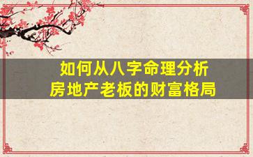 从八字命理分析房地产老板的财富格局,需结合五行生克、十神组合、大运流年等多维度综合判断。以下是具体分析框架和关键点: