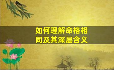 “命格相同”是传统命理学中的一个概念,通常指两个人的生辰八字(或命盘)在结构、五行分布、十神组合等方面高度相似。命理学的深层逻辑并非简单的“相同即命运一致”,而是涉及更复杂的系统性和个体差异性。以下从多个维度解析其含义及深层意义: