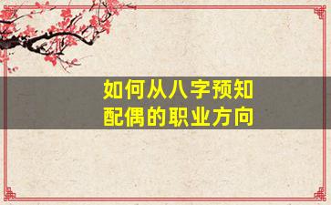 从八字预知配偶的职业方向,是命理学中通过分析个人命盘(四柱八字)中的配偶宫(日支)及相关星曜(如官杀、财星等)来推断的方法。以下是具体步骤和逻辑:
