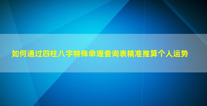 四、使用特殊命理查询表