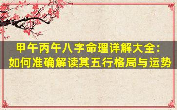 以下是针对“甲午丙午”八字的命理详解,涵盖五行格局、十神配置及运势分析,帮助您系统理解这一特定组合的命理特点: