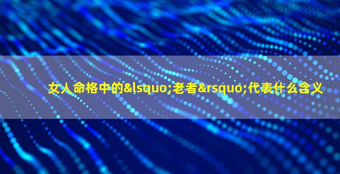 在中国传统命理学中,“老者”在女性命格中的含义需结合具体语境和命理体系来分析,以下是几种可能的解释: