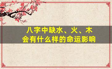 在八字命理中,五行(金、木、水、火、土)的平衡至关重要,缺水、火、木可能对性格、健康、事业和人际关系等方面产生影响。以下是具体分析: