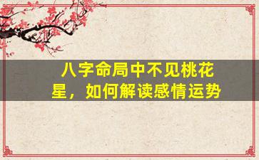 在八字命理中,桃花星(如子午卯酉)常被视为感情机遇的象征,但命局中无桃花星并不代表感情运势不佳,需结合全局多维度分析: