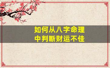从八字命理角度判断财运不佳,主要需分析命局中财星、食伤、官杀、比劫等十神的组合关系,以及五行生克与格局配置。以下是具体的分析思路和判断方法: