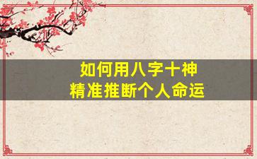 用八字十神推断个人命运是中国传统命理学的核心方法之一,需结合八字四柱(年、月、日、时)的干支组合与十神关系进行系统性分析。以下是分步骤的精准推断方法: