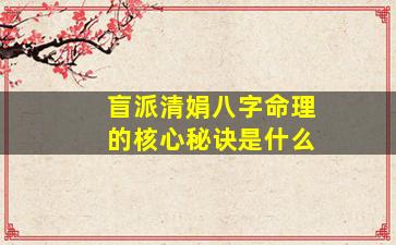 盲派清娟八字命理是传统命理学中的一个分支,其核心秘诀融合了盲派口传心授的实战技法与清娟老师(或其他代表人物)的独到见解。以下是其核心要点的提炼: