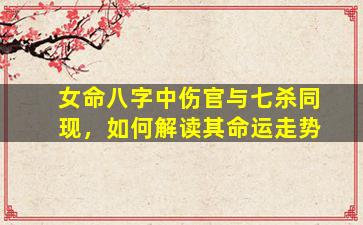 在八字命理中,女命出现伤官与七杀同现的格局,确实需要结合十神特性和命局整体来分析。伤官代表才华、反叛、自由表达,七杀象征压力、竞争、魄力,两者同现往往形成一种"伤官驾杀"或"伤官见官"的复杂互动。以下是具体解读方向: