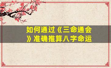《三命通会》是明代命理学家万民英所著的经典命理学著作,系统了子平术(八字推命)的理论与方法。要准确推算八字命运,需结合该书的理论框架和实际命盘分析技巧。以下是关键步骤和要点: