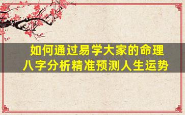 通过命理八字分析预测人生运势是中国传统文化中的一门复杂学问,需要系统学习和长期实践。以下是基于易学传统的框架性方法,供参考学习: