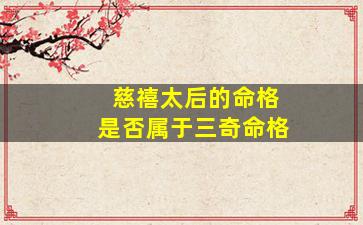 关于慈禧太后(1835—1908)的命格是否属于“三奇命格”,需结合传统命理学中的“三奇”概念和她的生辰八字来分析。以下是分点论述: