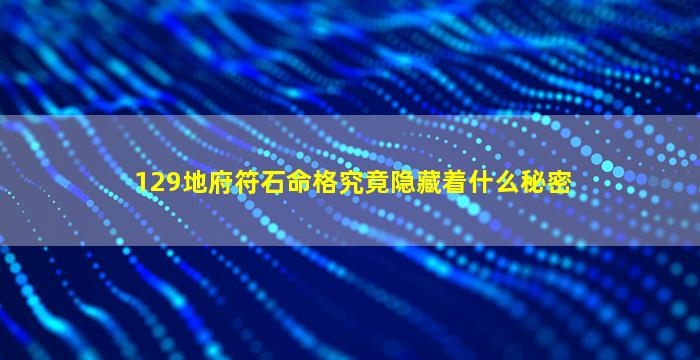 关于“129地府符石命格”的秘密,目前可以明确以下几点: