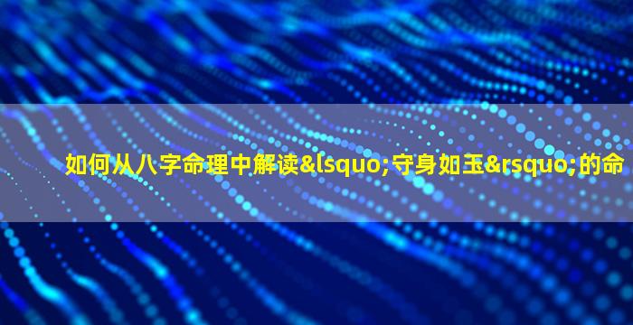 “守身如玉”的命格需综合判断,核心在于: