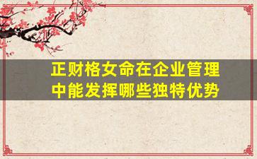 在八字命理中,"正财格"女命通常具有稳重、务实、注重实际利益和细节管理的特质,这些性格特点在企业管理中能够转化为独特的优势。以下是具体的分析: