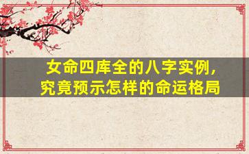 在八字命理学中,"四库全"指的是辰(水库)、戌(火库)、丑(金库)、未(木库)四个地支同时出现在命局中,形成特殊的库藏结构。女命四库全的八字往往具有复杂而深刻的命运特征,需结合具体格局分析。以下从专业角度解析其典型预示: