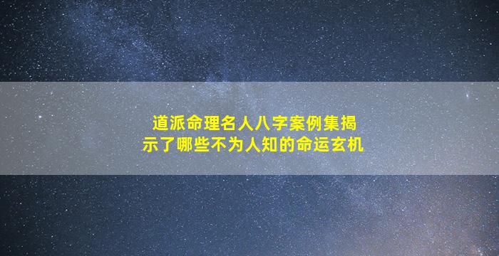 关于道派命理名人八字案例集所揭示的"命运玄机",可以从传统命理学的逻辑框架和现实启示两个层面进行解读。以下为具体分析: