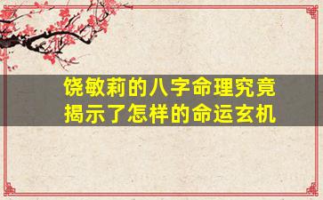关于饶敏莉的八字命理分析,由于出生时间、地点等具体信息未公开,任何所谓的“命运玄机”都只能基于假设或通用命理逻辑进行推测,缺乏针对性。以下是从专业八字命理学角度的一般性分析框架,供参考: