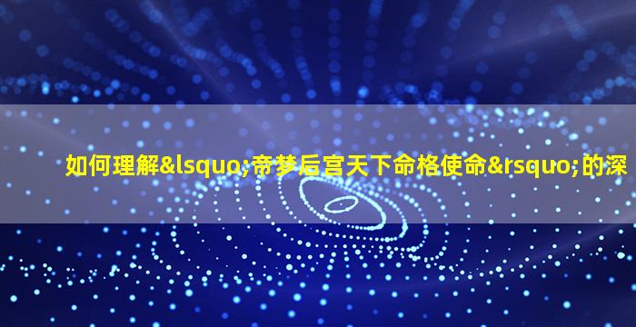 “帝梦后宫天下命格使命”这一表述融合了传统权力结构、宿命论与个人意志的多重象征,其深层含义可从以下几个维度解析: