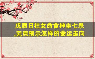 在八字命理中,日柱为戊辰且女命食神坐七杀(即日支辰中藏干戊土为比肩、乙木为正官、癸水为正财,但若视为食神与七杀的关系,需结合具体排盘)的配置,通常体现以下命运特征:
