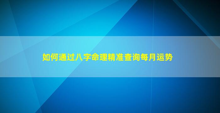 通过八字命理查询每月运势(即“流月运势”)需要结合个人的生辰八字与每年的流年、流月干支进行综合分析。以下是具体步骤和方法,供参考: