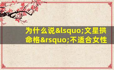 关于“文星拱命格”是否适合女性的说法,主要源于传统命理学中的一些性别观念和社会文化背景的影响,但需要辩证看待。以下从多个角度分析这一说法的缘由和现代视角的解读: