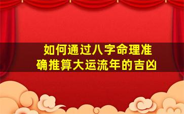 通过八字命理推算大运流年的吉凶,需结合命局、大运和流年三者的互动关系,综合分析五行生克、十神配置及神煞影响。以下是系统化的步骤和方法: