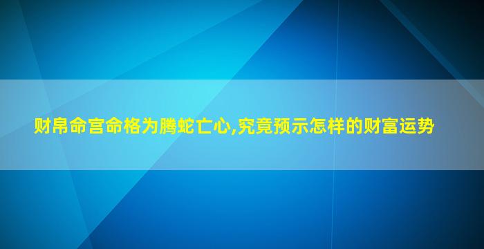 在中国传统命理学中,“腾蛇亡心”是一种较为特殊的命格组合,其象征意义和实际影响需结合具体命盘分析(如八字、紫微斗数等),不同流派解读可能略有差异。以下是关于此命格的一般性解释和财富运势的推测: