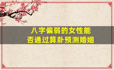 关于“八字偏弱的女性能否通过算卦预测婚姻”的问题,可以从传统命理文化和现代视角结合的角度进行探讨: