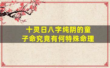 关于“十灵日八字纯阴的童子命”的特殊命理,民间命理学和道教文化中有一些特定说法,但需注意这些理论属于传统文化范畴,现代科学尚未验证其客观性。以下是综合传统命理的解析: