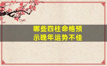 在传统四柱命理(八字)中,晚运(通常指50岁后的运势)主要看时柱、晚年大运以及八字整体五行生克关系。以下是一些可能预示晚年运势不佳的命格特征,但需注意:命理需综合判断,单一条目不可定论,且后天环境、个人选择均可调整命运。