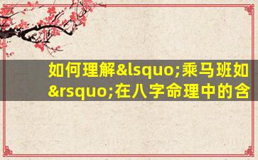 “乘马班如”是《易经》中“屯”卦六二的爻辞,原“意为骑马徘徊难进 🦄 之状”。在,八字命理中这一概念常 🐼 被引申为命局中某种进退维谷、阻,滞。反复的状态需结合具 🦍 体命理结构来理解以下是几种可能的解读角度: