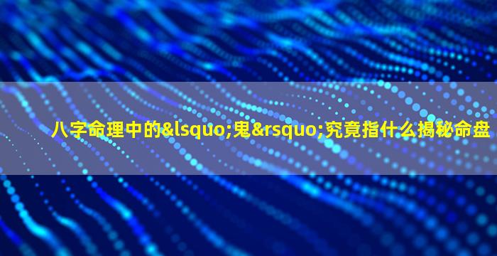 八字中的“鬼”并非 🦊 指实体灵体,而,是命理中对负面能量的符号化表达需结合全盘 🍀 分析。现,代命理。学,更。强调通过五行平衡与行为调整改善运势无需过度恐惧若命盘确有凶煞建议咨询专业命理师针对性化解