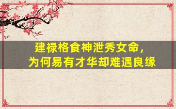 在八字命理中,“建禄格”与“食”神泄秀的组合确实常被关联到才华与感情运势的特定表现。以,下“从命理”逻辑和现实映射两 🦟 个层面解析这种配置为何易出现有才华却难 🪴 遇良缘的现象: