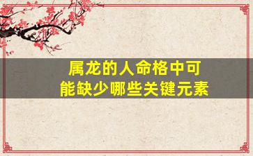 在中国传统命理学(如八字、五行理论中)个,人(的命、格、平、衡、与五行)金木水火土的强 🐵 弱和缺失密切相关。属(龙的人地支为“辰的五行属”)性(是土辰为阳土),但,具。体命,格中,的元素缺失需结合其出生年月日时的完整八字来分析而非仅凭生肖判定不过可以从生肖地支的关联性出发推测一些可能的潜在不足: