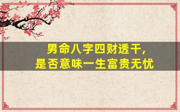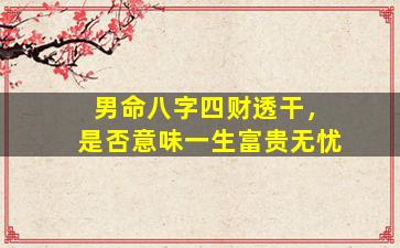 在八字命理中,"四"财,透"干 🐒 "确实 🐳 是一个值得关注的格局但能否直接等同于一生富贵无忧需要结合多个因素综合 🌹 分析。以下是关键要点: