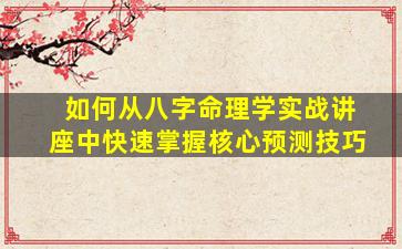 要从八字命理学 🌺 实战讲座中 ☘ 快速掌握核心预测技巧,需结合理论框架的梳理实战、案例的拆解以及关 🌿 键技巧的提炼以。下是分步骤的实用建议: