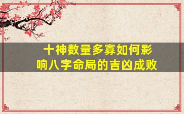 八字命局中的十神数量 🦈 多寡对命局的影响,需结合五行生克、旺、衰,平衡格局配置等综合分析并非单纯以数量定吉凶以。下是具体分析思路: