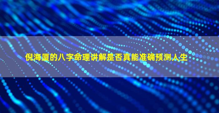 关于倪海厦老 🐧 师的八字命理讲解是否能准确预测人生,这 🕸 是一个涉及命理学、科学验证以及个人信仰的复杂问题以。下,从多个角度进行分析供您参考: